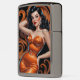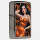 Brunette Pin-Up Orange Dress Zippo Lighter