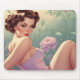Brunette Pin-Up Pastel Flowers Mouse Pad