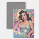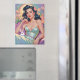 This artwork captures a magical Easter moment! A raven-haired beauty lounges gracefully in a shimmering teal gown, her dark waves adorned with vibrant pink flowers. A fluffy white bunny nestles beside her, adding a touch of innocence to her glamorous allure. The background bursts with colorful blooms and a soft, cosmic glow, reflecting a blend of springtime joy and ethereal charm. Her poised elegance and the delicate details—like her sparkling jewelry—make this piece a delight. Ideal for those who love retro-inspired art with a whimsical Easter flair!