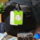 Fun brightly colored bag tag made of hard acrylic plastic. Back is left blank for your own personalization.