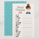 Cute yoga girl bridal shower pictionary game cards. A pink lotus flower, cream and white polka dot background on the front a brunette bride in a white tank with a pink heart, black leggings sits cross legged on a teal aqua blue mat. She wears a cute black and white polka headband with a matching pink flower on it. The back of this game card is teal aqua blue and white with polka dot hearts. Answer Key: Bride to Be, Champagne Toast, Dress Fitting, Cut the Cake, She Said Yes!, Going to the Chapel of Love, Groomsman, Flower Girl, Ring Bearer, Bridal Shower, Honeymoon, Eat, Drink and Be Married, Falling in Love, He Put A Ring On It or He Proposed, Kiss the Bride. Artwork © Chrissy H. Studios, LLC. All rights reserved.