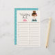 Cute yoga girl bridal shower a-z game cards. Have your guests add wedding related words from a through z on this cute game cards. A pink lotus flower, cream and white polka dot background on the front and a brunette bride to be in a white tank with a pink heart, black leggings sits cross legged on a teal aqua blue mat. She wears a cute black and white polka headband with a matching pink flower on it. Artwork © Chrissy H. Studios, LLC. All rights reserved.