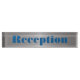 Metallic looking desk nameplate done in a brushed aluminum look. The bold blue text is ready to personalize to read anything you want. Great for any business.