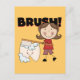 A girl stick figure with a big toothbrush brushes a big smiling tooth on T-shirts, mugs, magnets, cards, tote bags, and other items. These BRUSH items are a great way to instill the importance of brushing your teeth in your child, also great for dentists, dental assistants, and patients!