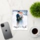 elegant foil brush lettering personalized bride and groom photo card for your wedding announcements. custom text and photo design.