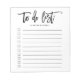 Chic personalized notepad in crisp black and white features "to do list" at the top in handwritten style brush lettered typography. Personalize with your name or choice of text beneath, or leave blank if desired. 10 lines with checkboxes help you keep track of all your important tasks!