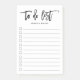 Chic personalized post-it note pad in crisp black and white features "to do list" at the top in handwritten style brush lettered typography. Personalize with your name or choice of text beneath, or leave blank if desired. 11 lines with checkboxes help you keep track of all your important tasks!