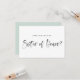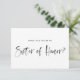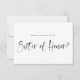 Ask friends and family to be part of your wedding party with this feminine and modern "Will you be my sister of honor?" card. It features dark charcoal watercolor brush lettering and a mint colored back. Personalize by the recipient's name and message.
