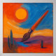 A surreal and vibrant landscape where a giant brush paints a glowing river beneath a swirling, Van Gogh-inspired sky. The scene blends elements of fantasy and creativity, capturing the essence of artistic expression and imagination.