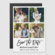 Modern Brush Script Save The Date Engagement Announcement Couple 4 Photo Magnetic Card