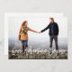 Our Adventure Begins, Modern Brush Script Save The Date Engagement Couple Photo Card