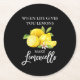 Brush Script Black Watercolor Lemons Limoncello Round Paper Coaster