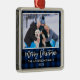 Modern Brush Script, Rustic Blue Plaid Merry Christmas Family Photo Ornament