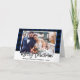 Modern Brush Script Blue Plaid Wedding Photo Christmas Folded Card