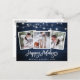 Brush Script Blue Wood Lights 3 Photo Holiday Postcard