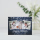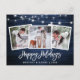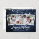 Rustic Blue Wood Brush Script 3 Photo Happy Holidays Postcard with String Lights