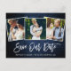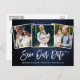 Brush Script Blue Wood Save Our Date 3 Photo Postcard