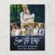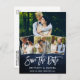 Brush Script Blue Wood Save The Date 4 Photo Postcard