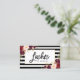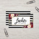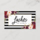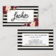 Modern Brush Script, Watercolor Burgundy Floral, Lashes Makeup Artist Business Card - Black and White Stripes