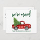 Modern Brush Script Change of Address Vintage Red Truck with Christmas Tree Postcard - Green Script