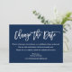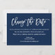 Modern Brush Script Change The Date Wedding Postponed Card Navy Blue