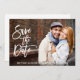 Modern Brush Script Trendy Save The Date Engagement Couple Photo Card - White Script