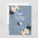 Brush Script Dusty Blue Pink Floral Save the Date Announcement Postcard