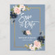 Modern Brush Script, Watercolor Dusty Blue Pink Blush Floral, Save The Date Engagement Gold Frame Postcard