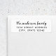 Custom-designed return address labels featuring personalized family name in rustic hand brush script. Personalize with name, address, and your choice of background color. Suitable for announcements, invitations, cards, letters, and more!