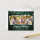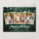 Rustic Green Wood Brush Script 3 Photo Family Happy Holidays Postcard with String Lights