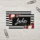 Brush Script Lashes Striped Burgundy Floral Business Card