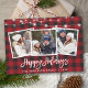 Brush Script Lights 3 Photo Red Plaid Holiday Card