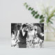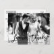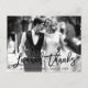 Modern Brush Script Bride and Groom, Black and White Photo Love and Thanks Wedding Thank You Postcard