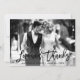 Modern Brush Script Bride and Groom, Black and White Photo Love and Thanks Wedding Thank You Card