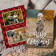 Brush Script Merry Christmas Red Plaid 3 Photo Holiday Card