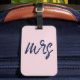 blush background with navy blue brush stroke script font "mrs" which you can customize further with your name or leave it as is. Choose between different colors and pair with "mr" luggage tag