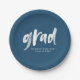 Add a personalized touch to your graduation party with graduation paper plates. The graduation paper plates display "grad" in white painted lettering with a navy background or color of your choice. Personalize the navy graduation paper plates by adding the graduate's name and graduation year.