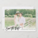This Save the Date announcement card features brush script typography, your favorite photo and your custom text along with an optional QR Code on the back. Use the template to add your information.