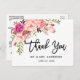 Brush Script Pink Floral Wedding Thank You Postcard