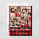Modern Brush Script Family 4 Photo Christmas Red Plaid Postcard