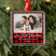 Modern Brush Script, Rustic Red Plaid Our First Christmas Family Photo Ornament