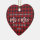 Modern Brush Script, Red Buffalo Plaid, Our First Christmas as Mr. and Mrs. Heart Ornament
