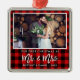 Modern Brush Script, Rustic Red Plaid Our First Christmas as Mr. and Mrs. Wedding Photo Ornament