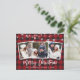Brush Script 3 Photo Family Merry Christmas Card with String Lights - Red Buffalo Plaid