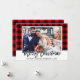 Brush Script Red Plaid Wedding Photo Christmas Holiday Card