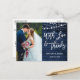 Modern Brush Script, Rustic Blue Wood and String Lights, With Love and Thanks Wedding Photo Thank You Postcard