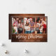 Brush Script Rustic Wood 3 Photo Christmas Holiday Card