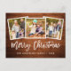 Rustic Wood Brush Script 3 Photo Family Merry Christmas Postcard