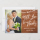 Modern Brush Script, Rustic Wood and String Lights, With Love and Thanks Wedding Photo Thank You Card