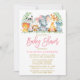 Brush Script Safari Animals Pink Bow Baby Shower Invitation